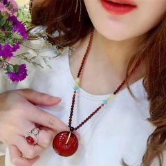 18K金包边镶嵌和田玉碧玉佛国风女款吊坠(含链)