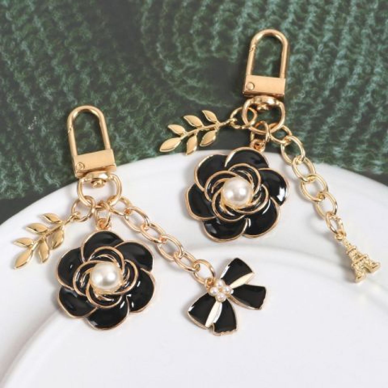 小香风山茶花钥匙扣珍珠蝴蝶挂件