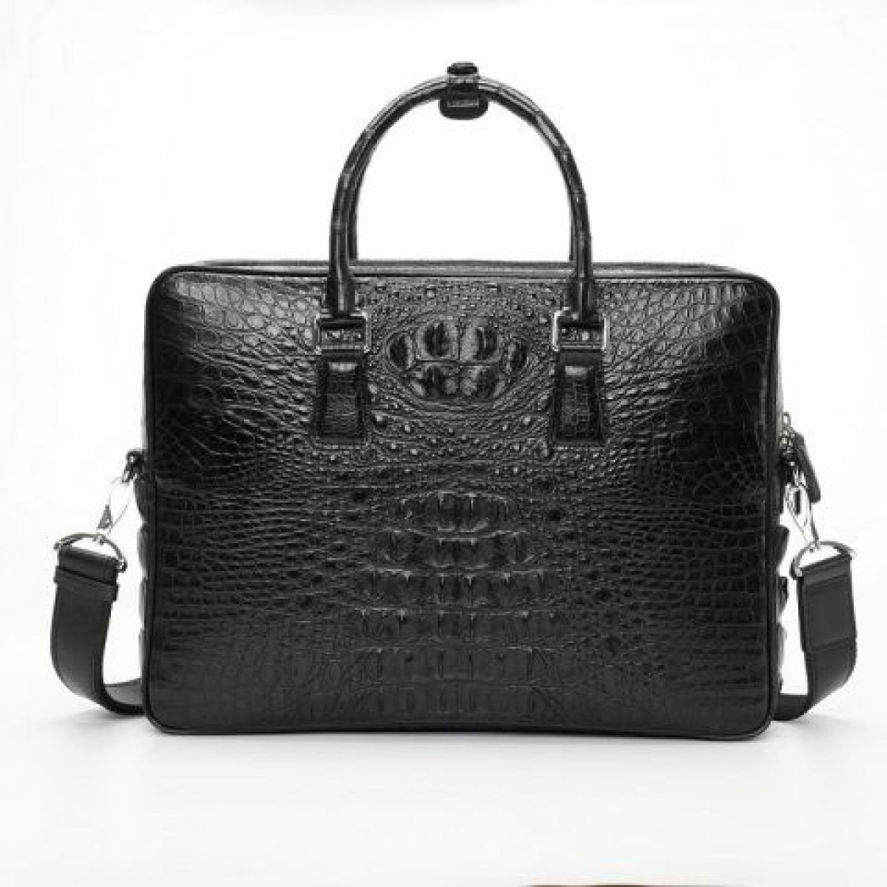 鳄鱼皮男包圆边公文包真皮商务手提包