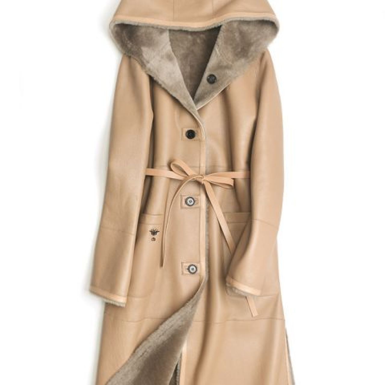 - 女士双面羊绒水貂皮草毛领轻奢流苏斗篷大衣外套(浅灰色)
