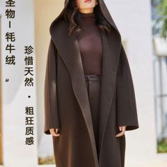 • 女士双面羊绒水貂皮草毛领轻奢流苏斗篷大衣外套(浅灰色)