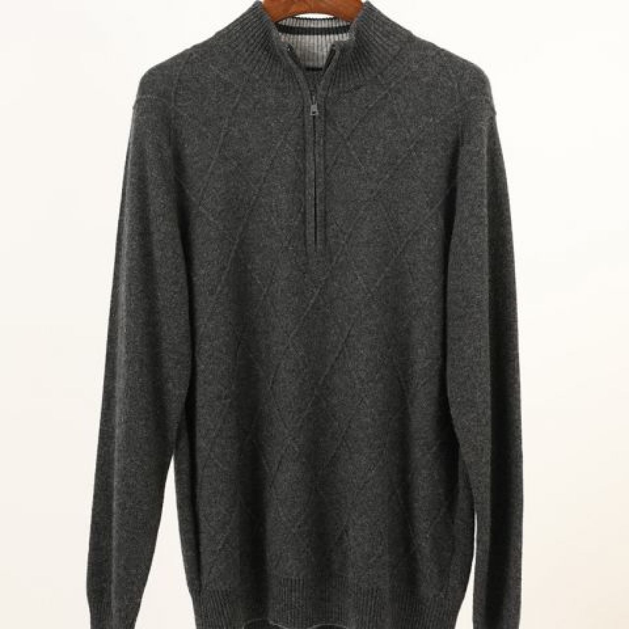 羊绒衫半高领保暖菱形针织拉链男士套头衫(炭黑色)