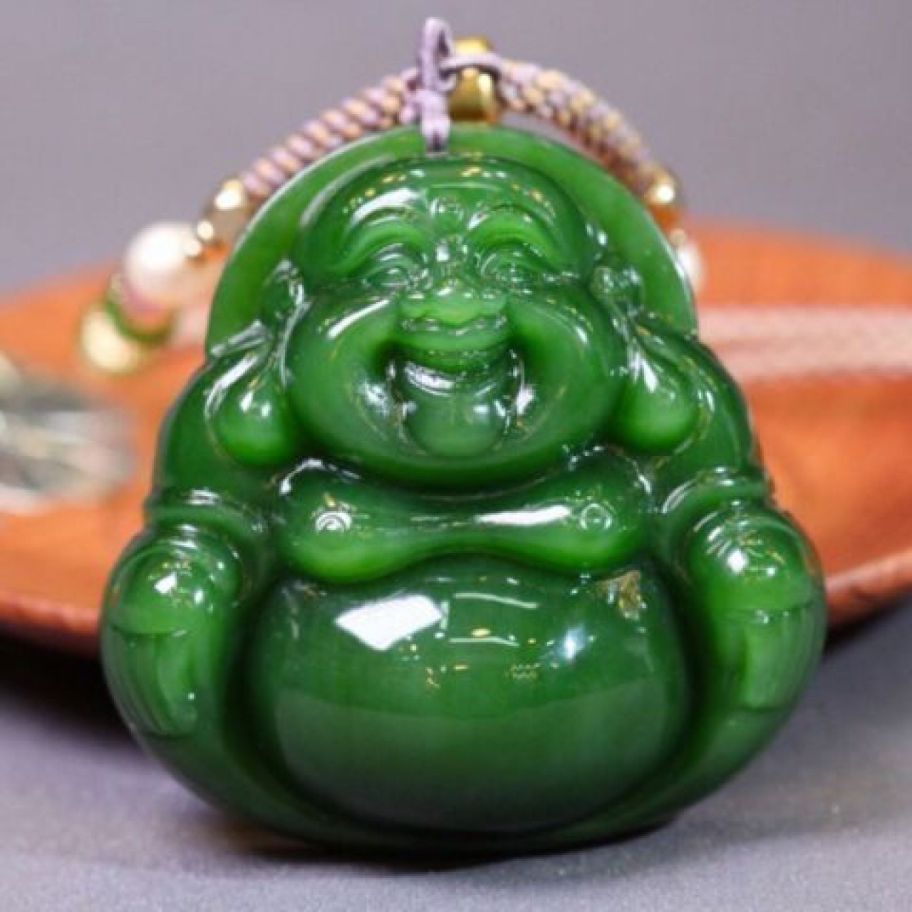 新疆和田玉优质碧玉菠菜绿佛公玉石吊坠(77.5克)
